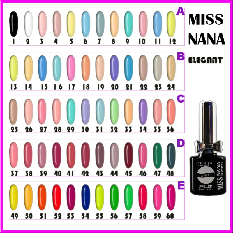 La gama de gel Elegant Miss Nana es una línea de geles de alta calidad diseñada para brindar resultados profesionales y duraderos en la aplicación de uñas.