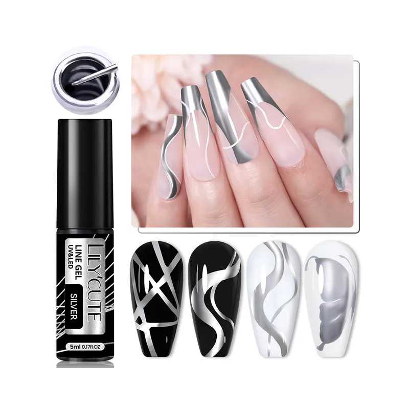 El Gel Liner Metálico de 5 ml es una herramienta esencial para cualquier entusiasta del nail art que busca añadir un toque de lujo y brillo a sus diseños de uñas. Disponible en una variedad de colores metálicos, incluyendo plata y oro, este delineador en gel es perfecto para crear líneas precisas, detalles intrincados y efectos decorativos deslumbrantes en tus manicuras.
