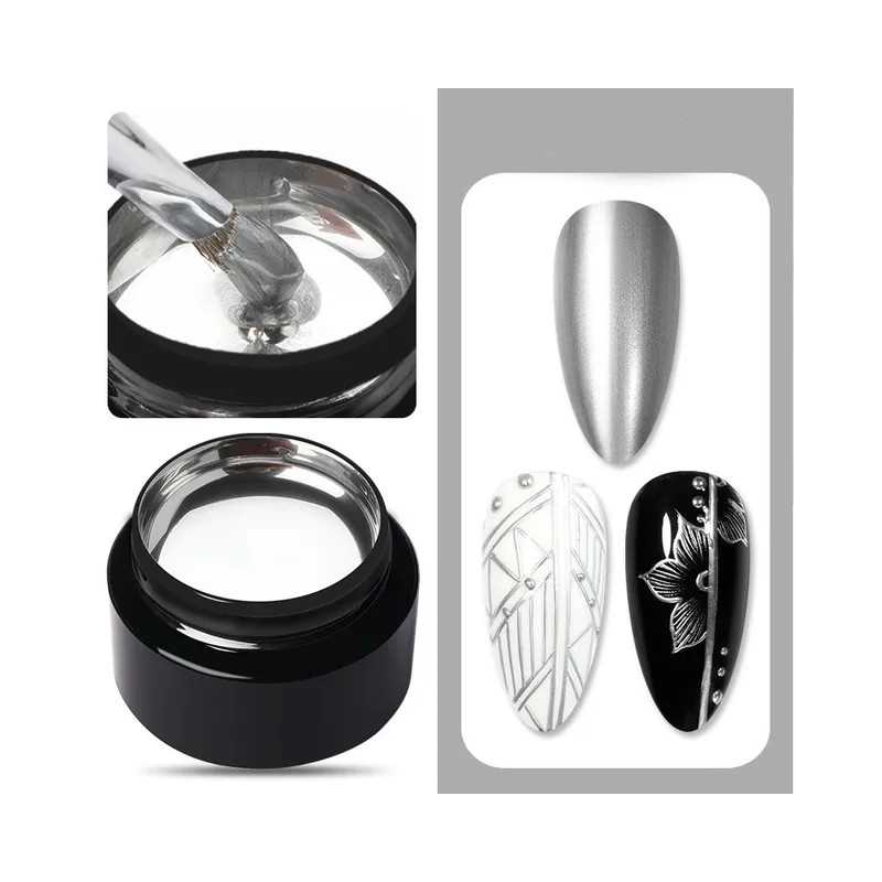 "El Gel Painting Metálico de Born Pretty es la elección perfecta para quienes buscan un acabado metálico intenso y reflectante. Con un contenido de 5ml por frasco, este gel ofrece un color tan vibrante que se asemeja al reflejo de un espejo. Su fórmula de alta calidad ha sido diseñada para curarse tanto con lámparas UV como LED, garantizando una durabilidad y brillo excepcionales. Como profesional en el arte de las uñas, puedo afirmar que este gel painting transformará cualquier diseño en una obra maestra metálica."
