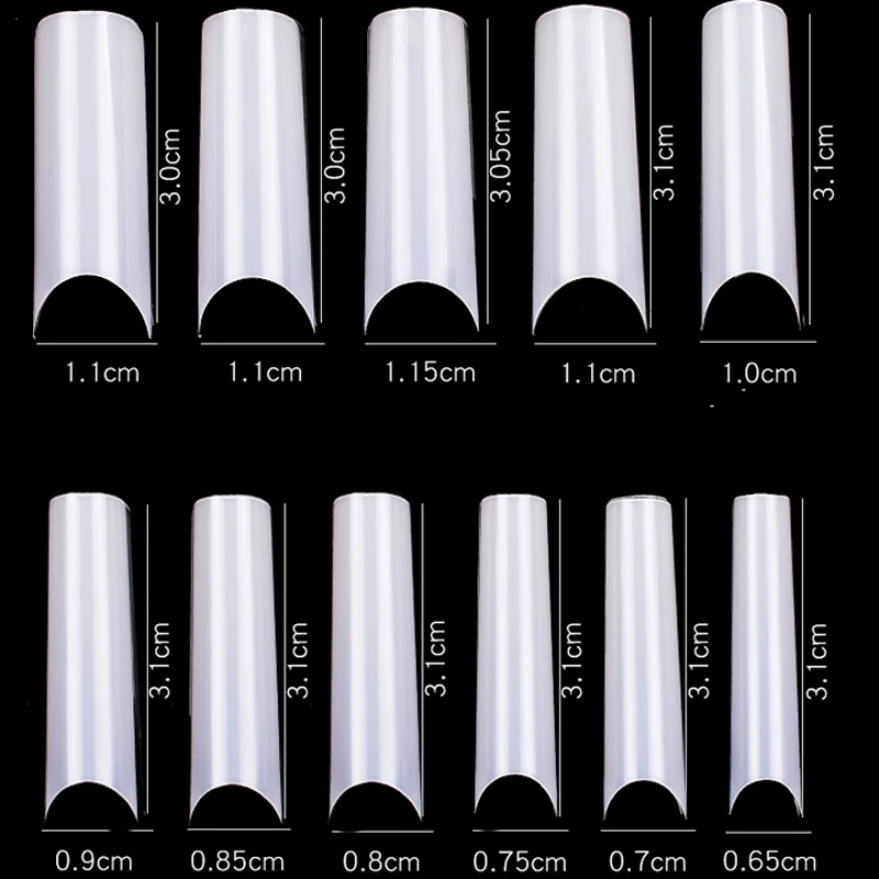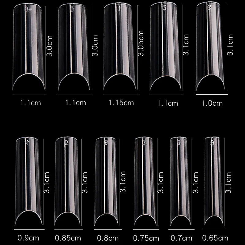 Selección del tamaño: Examina las uñas de tu cliente y selecciona el tamaño de tip adecuado para cada una. La bolsa incluye una amplia variedad de tamaños, así que elige el que mejor se ajuste a la forma y tamaño de cada uña.